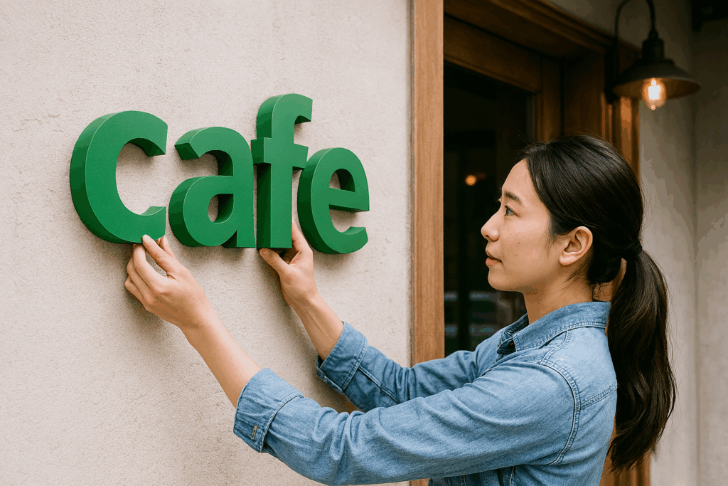 たとえば、カフェの店名ロゴにはアクリル素材がよく使われています。